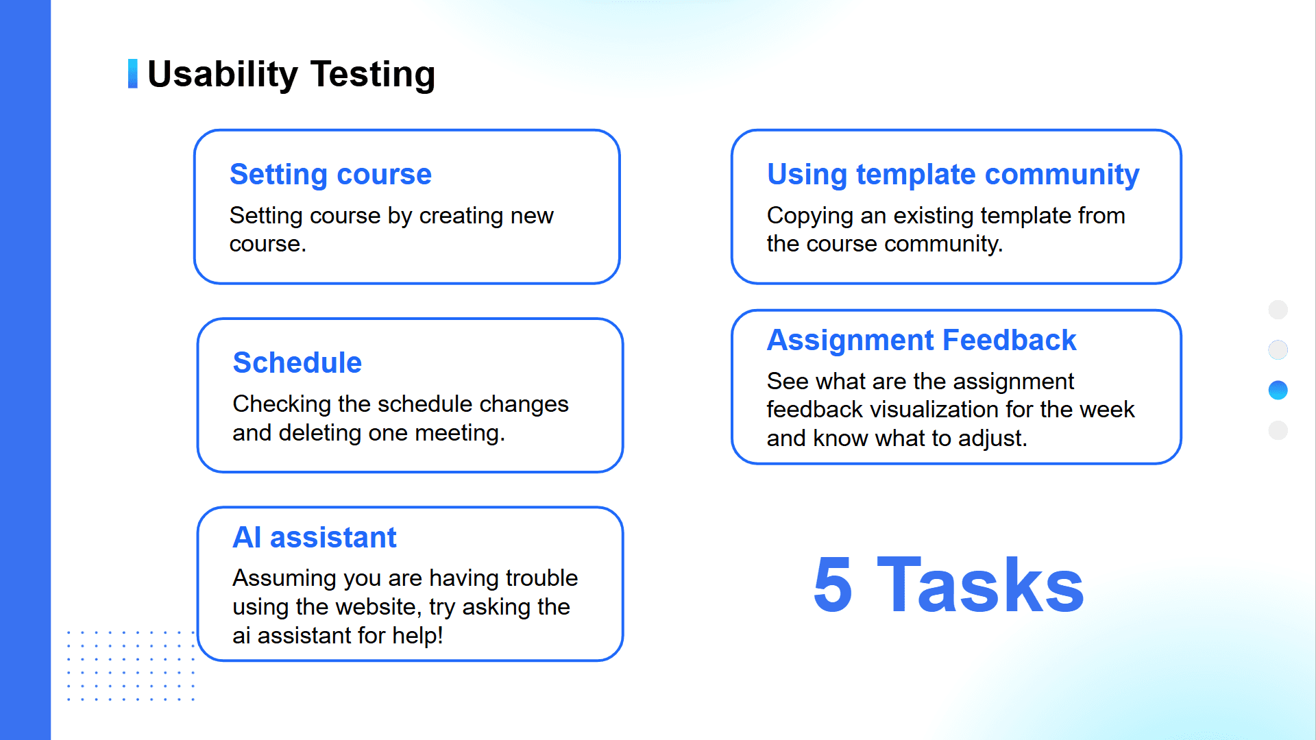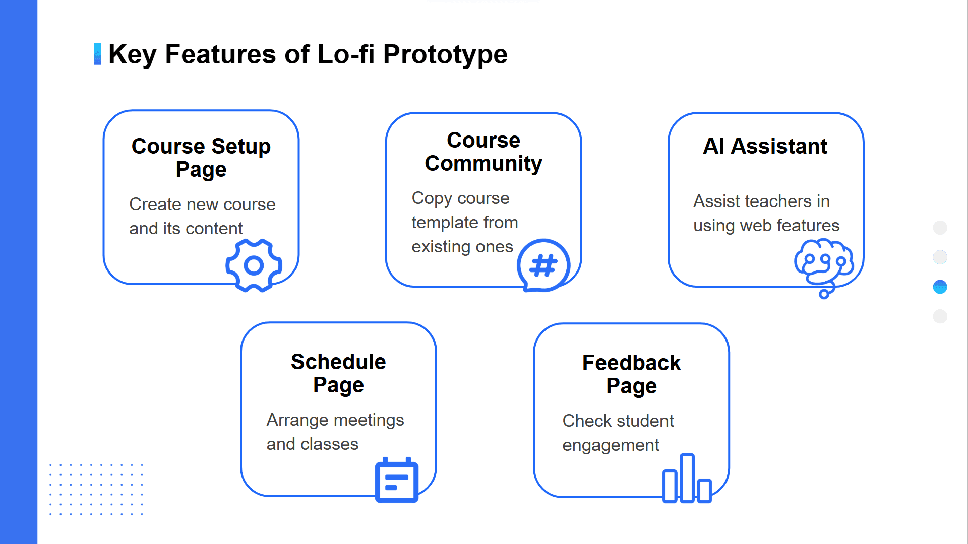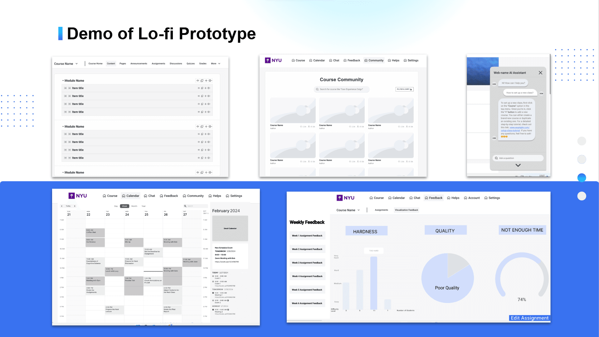 Design a lo-fi prototype and conduct user testing to observe user interactions, collect feedback, and identify pain points.