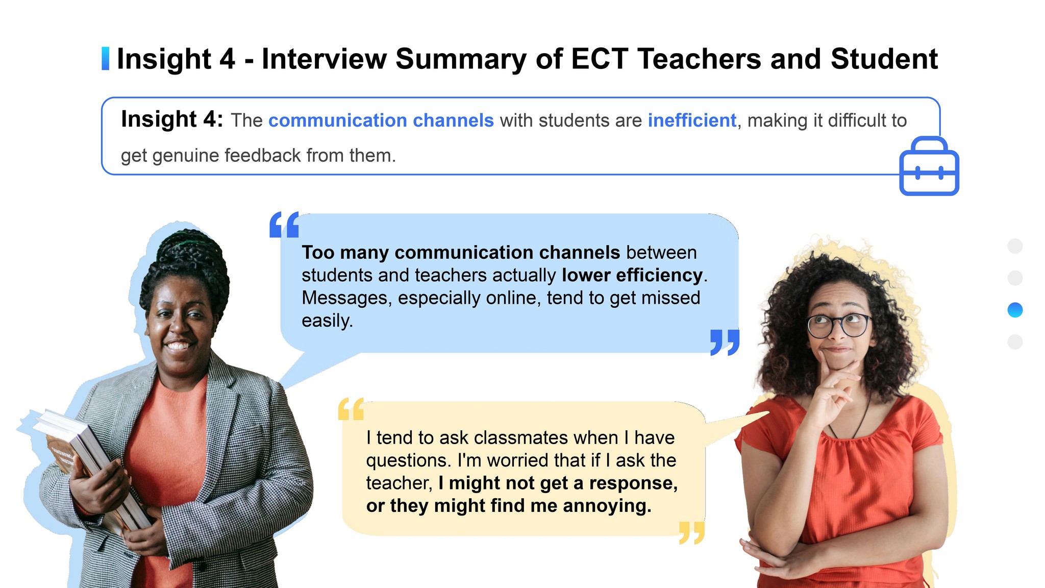 The communication channels with students are inefficient, making it hard to get genuine feedback from them.