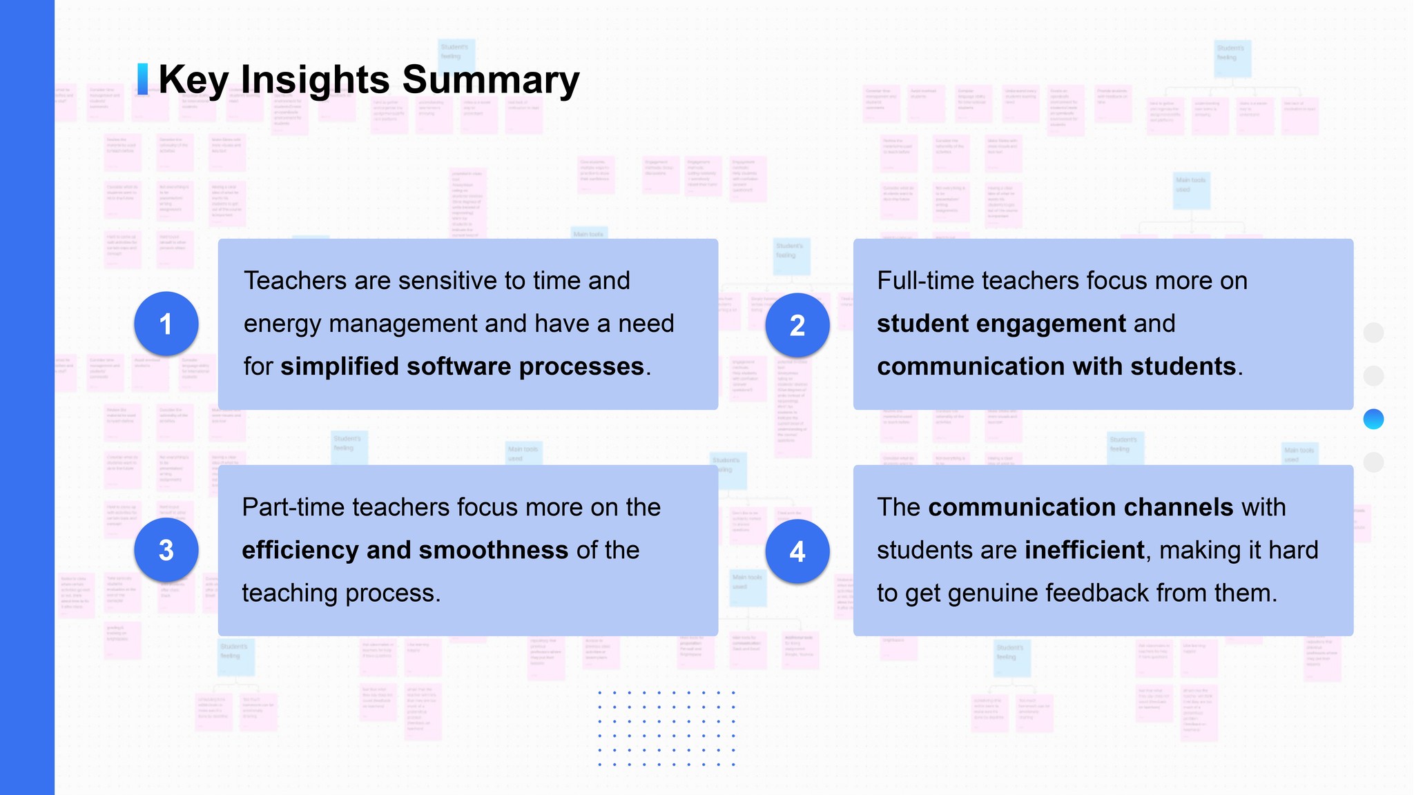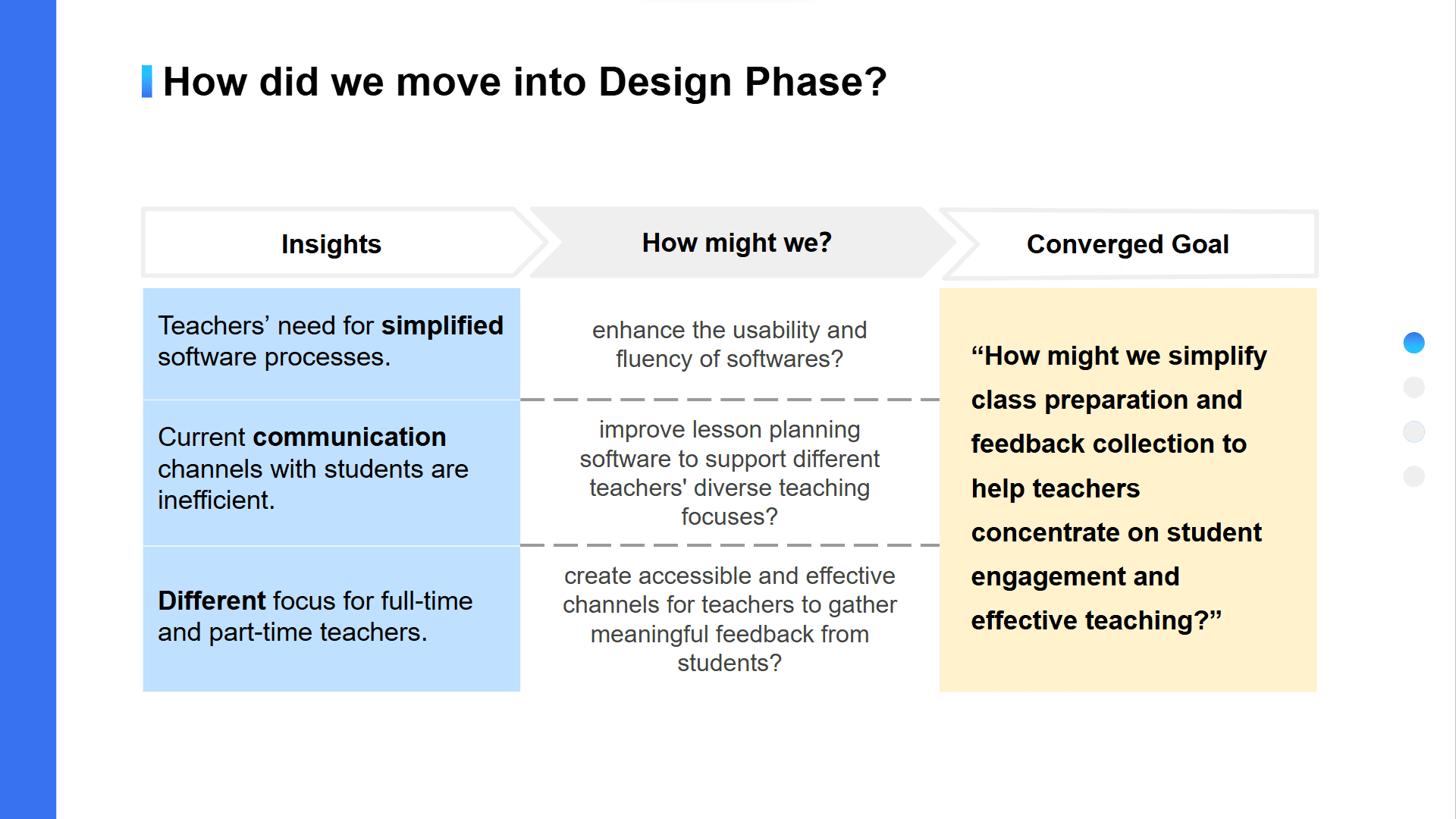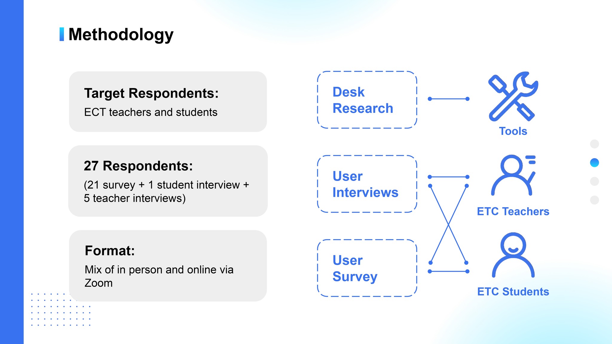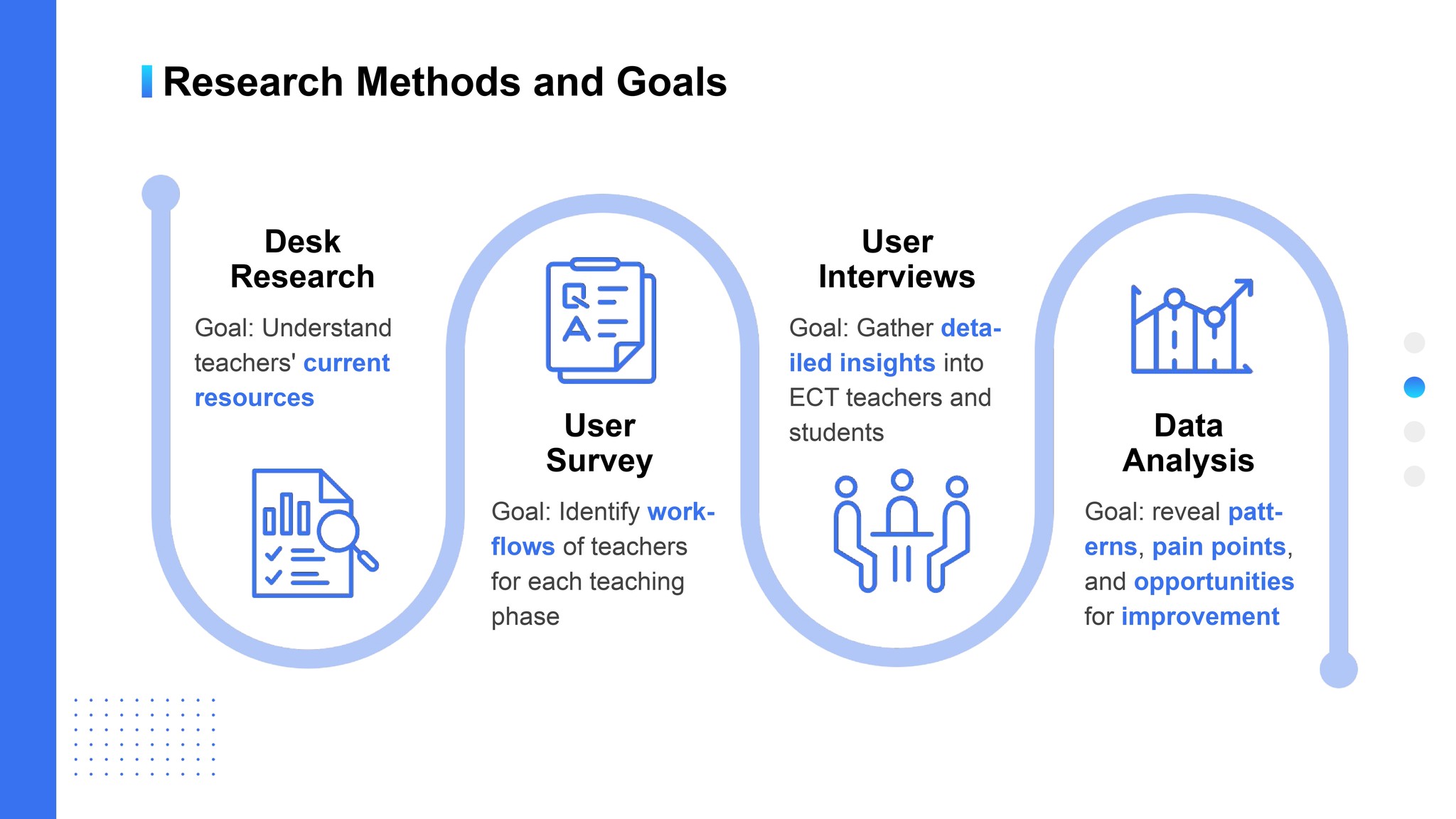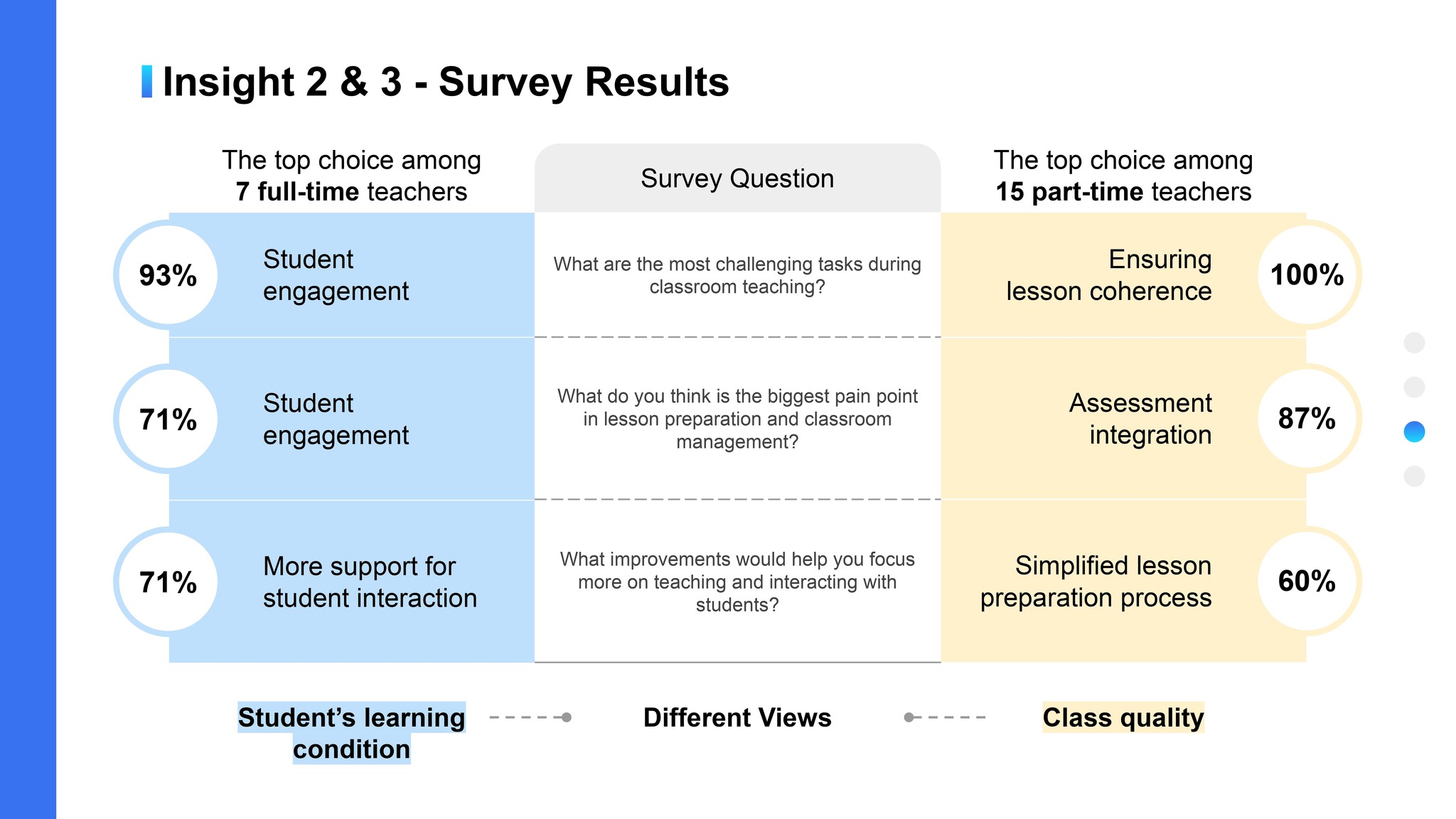 We researched teachers' teaching tools and lesson preparation processes, then formulated questions for further exploration in the user survey.