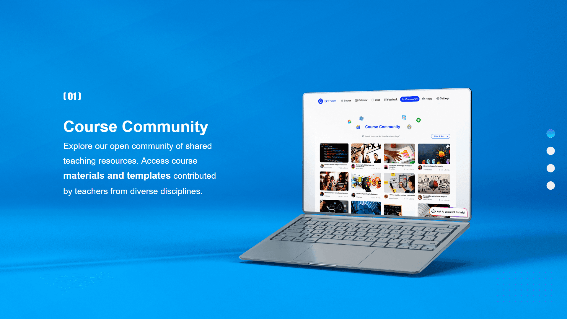 One of the standout features of our web is the Community section. Here, teachers can explore a wide variety of course materials and templates shared by other teachers. This open-source approach makes lesson planning more efficient and rich.