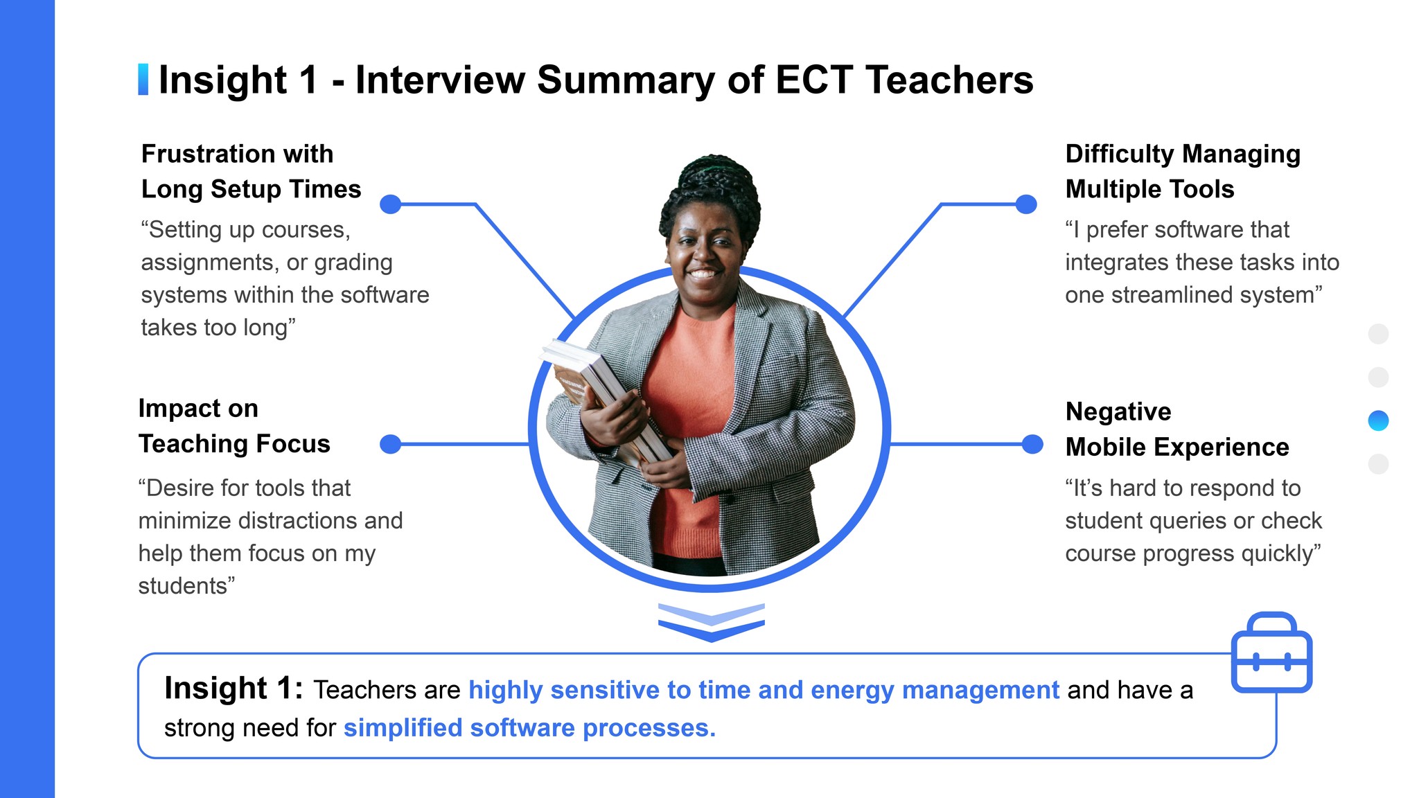 Teachers are sensitive to time and energy management and have a need for simplified software processes.
