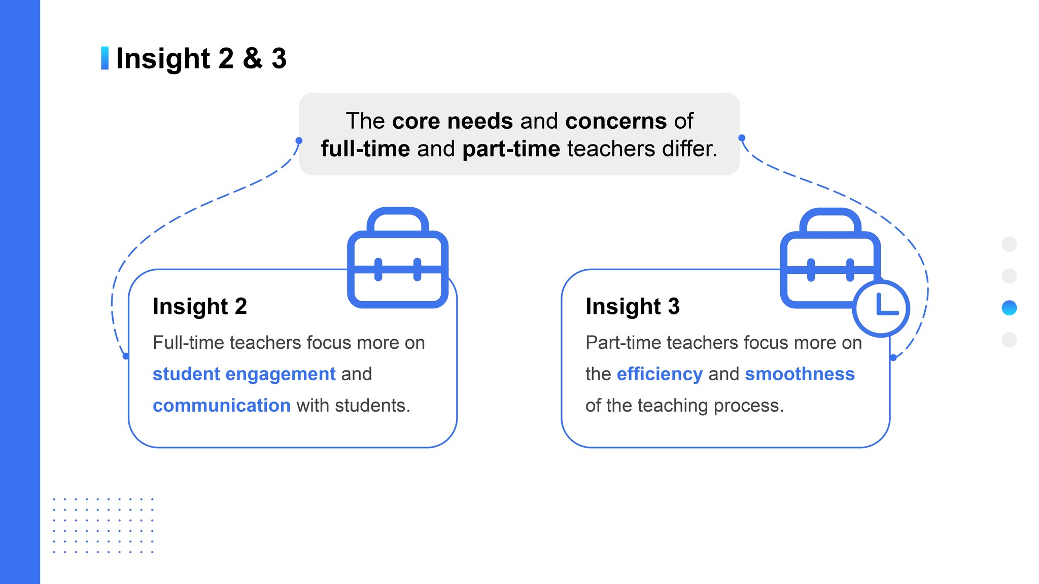 Full-time teachers focus more on student engagement and communication with students.