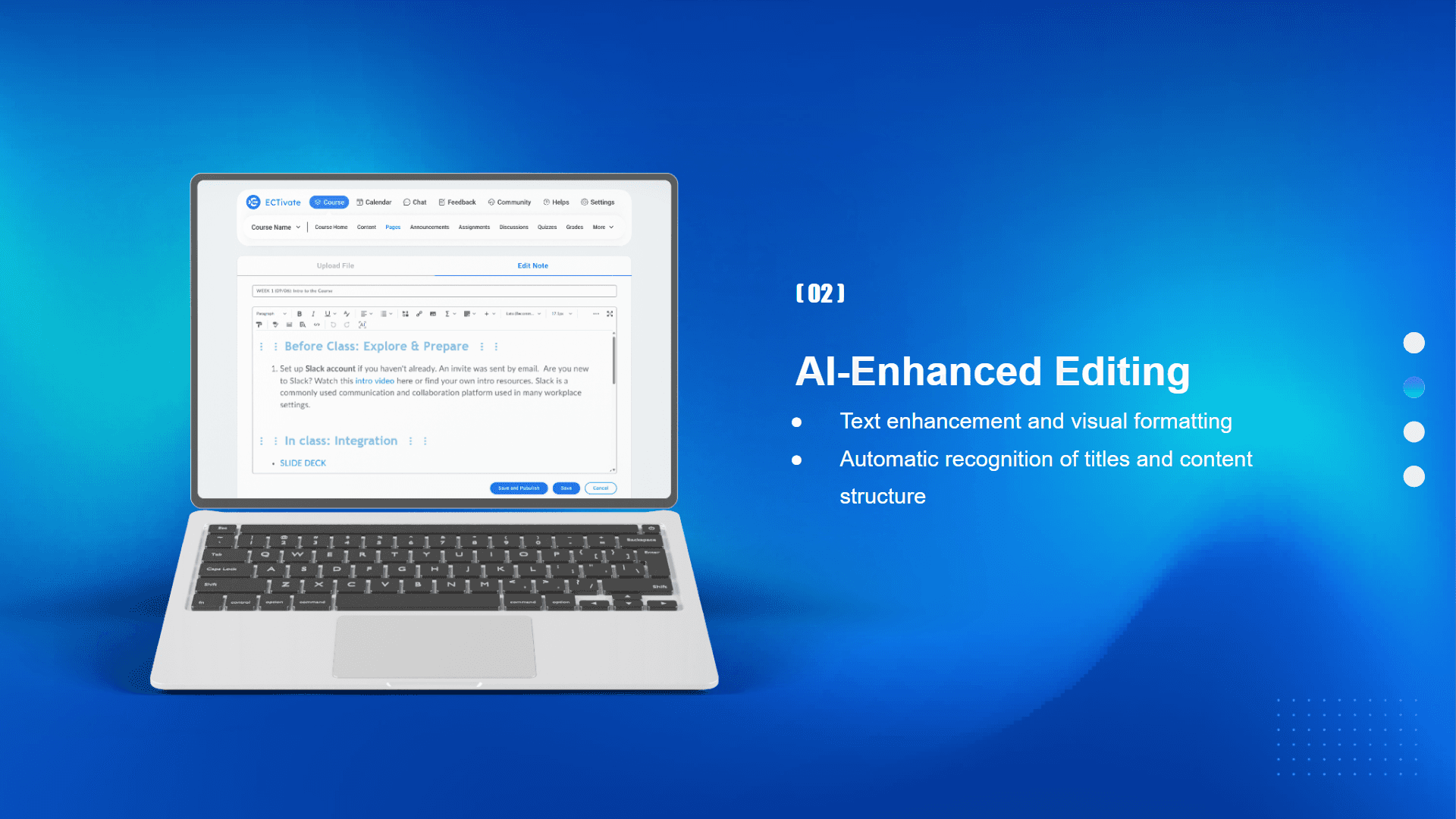 ECTivate integrates teaching and other schedule events, allowing instructors to view and edit their schedules on a single page according to the communication with students.