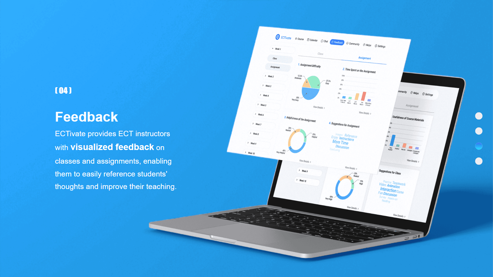 We also provides ECT instructors with visualized feedback on classes and assignments, enabling them to easily reference students' thoughts and improve their teaching.