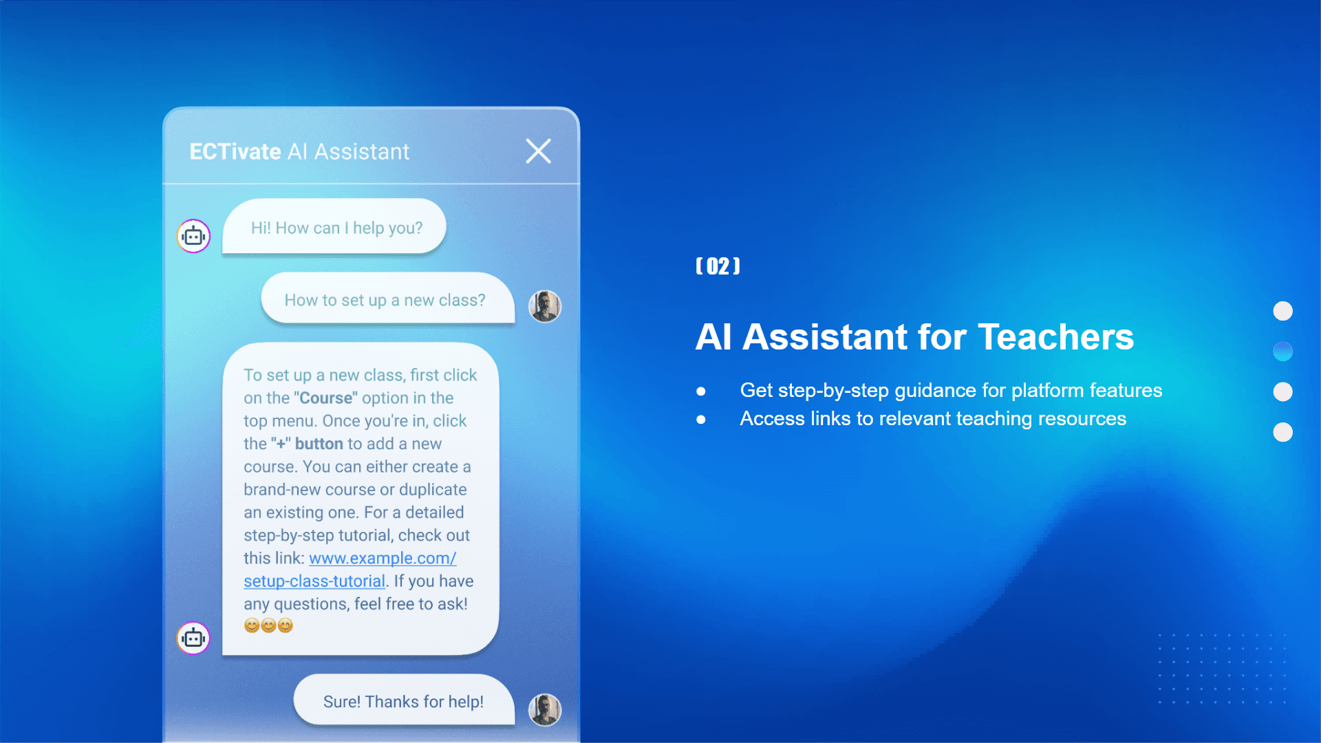 Next feature is AI assistant. For teachers, If you have difficulties using platform features, you can just ask the AI for help. It will provide step-by-step instructions and even include links to relevant teaching resources. This ensures that teachers can use the platform with ease and confidence.